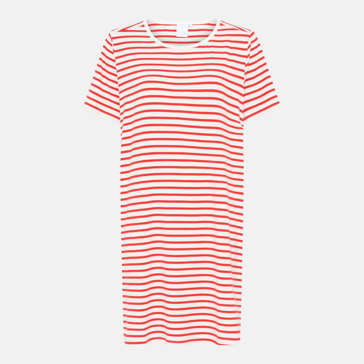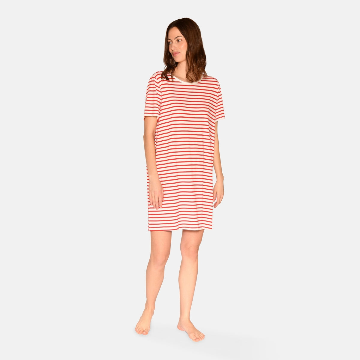 Bea Kurzarm-Bambus-Nachthemd - Rot gestreift