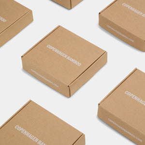 Wir verwenden natürliche braune Papiertüten mit selbstklebenden Verschlüssen und in Dänemark hergestellte Kartons. Um die Ware bestmöglich zu schützen und die Lücken in den Kartons zu füllen, verwenden wir Füllmaterial aus 100 % Recyclingpapier.