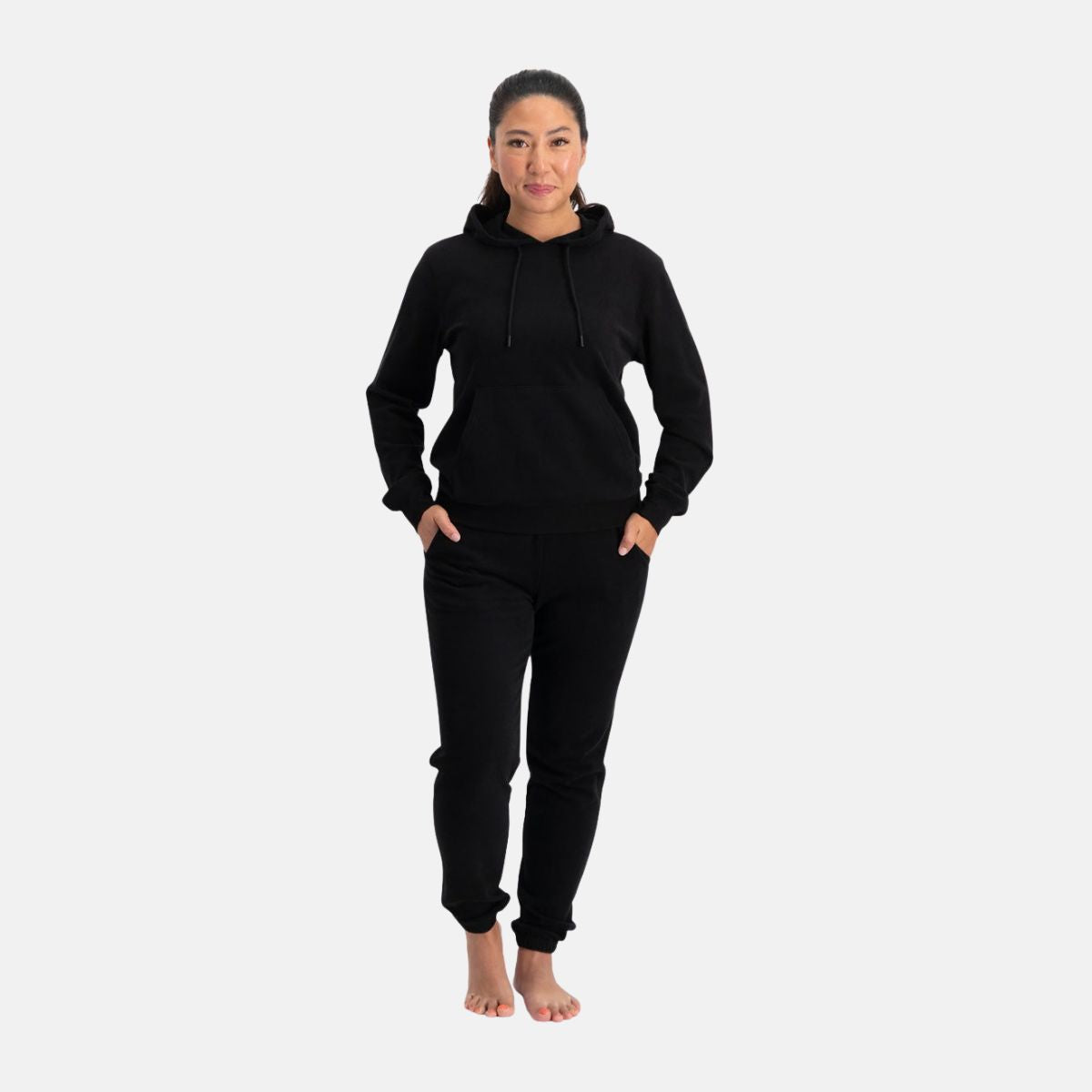 Bequeme und modische Damen-Sweatpants in Schwarz. Die weiche Qualität und die lockere Passform machen sie ideal für gemütliche Tage zu Hause.